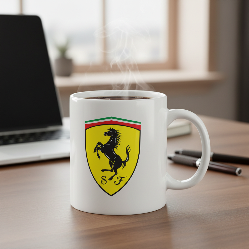 Taza de cerámica blanca de Ferrari